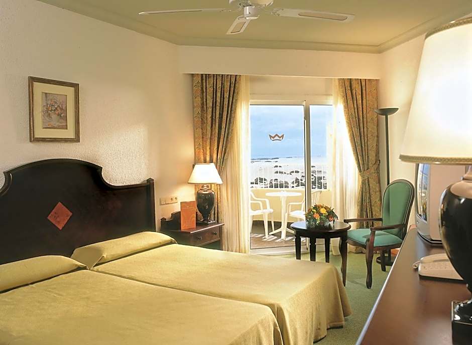 Suite with sea view (Main Building) is 431 square feet and includes 2 double beds 131-150 width plus balcony, hairdryer, and safe.